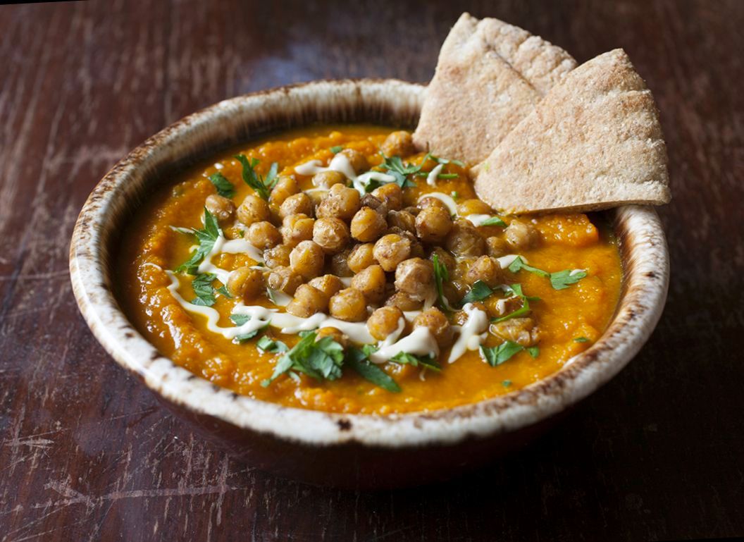 - Ladle into bowls. Dollop each with lemon-tahini, chickpeas and garnish with parsley. Serve with pita wedges.